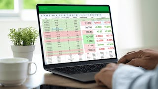 Skills you'll gain: Excel Formulas, Dashboard, Microsoft Excel, Spreadsheet Software, Data Preprocessing, Data Literacy, Data Manipulation, Data Presentation, Excel Macros, Data Storytelling, Data Analysis Software, Business Analytics, Pivot Tables And Charts, Financial Forecasting, Analytical Skills, Advanced Analytics, Business Mathematics, Financial Analysis